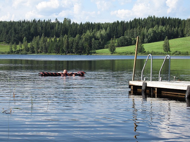 Började sy på västen. Hade alldeles egen surströmmingsskiva med en av burkarna från SmakLust-mässan. Hokan spelade boule med jobbet.