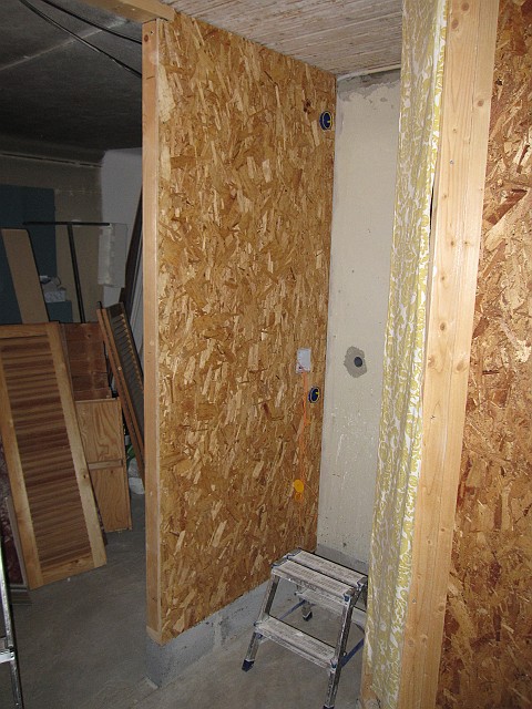 Byggde i alla fall en del i källaren. Nu sitter det gips på bägge väggarna runt tvättmaskinen,