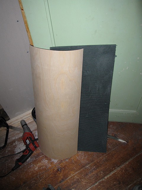 Byggde in avloppsröret lite snyggt med den fantastiska tunna plywooden och en bit av ett liggunderlag.
