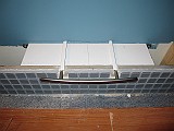 Fick upp insidan av väggen vid tvättmaskinen och byggde ett hål in till pannrummet.