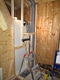 Some work with shelves in teh kitchen, some plumbing and some small pieces of the walls in the top floor bathroom.