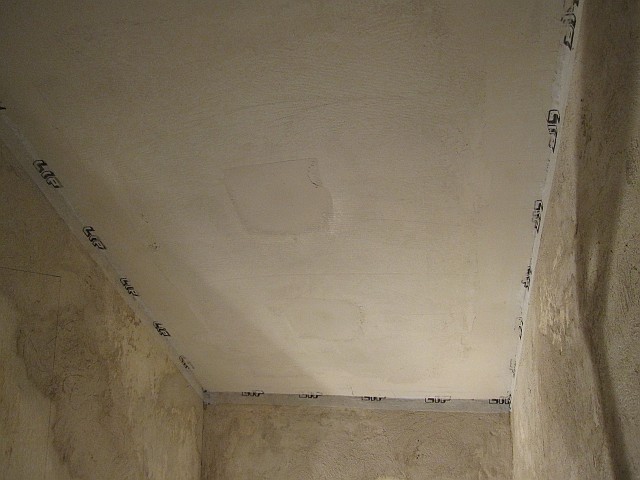 Limmade glasfiberremsor runt taket i matkällaren. Inte så mycket som fuktspärr, men mer som spindelspärr. Tyckte att det var ett ganska bra sätt att se till att små djur inte kan krypa från taket och ner i matkällaren.