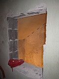 Vi bestämde oss för att fixa väggarna utanför matkällaren också. Så fönstret behövde också putsas ihop.