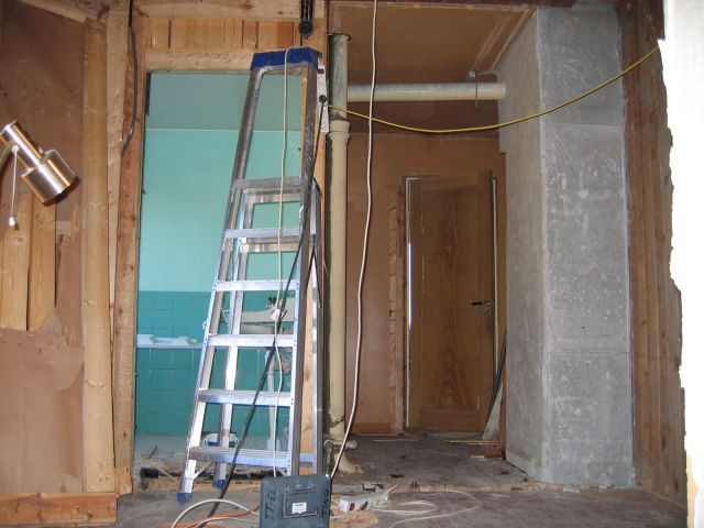 Väggen mot badrummet ska täckas med tretext och vävtapet, så att den